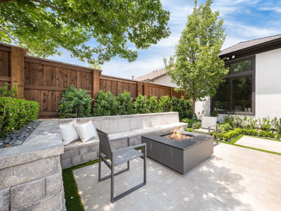 庭院装修:极简小火坑 +L形绿坛...